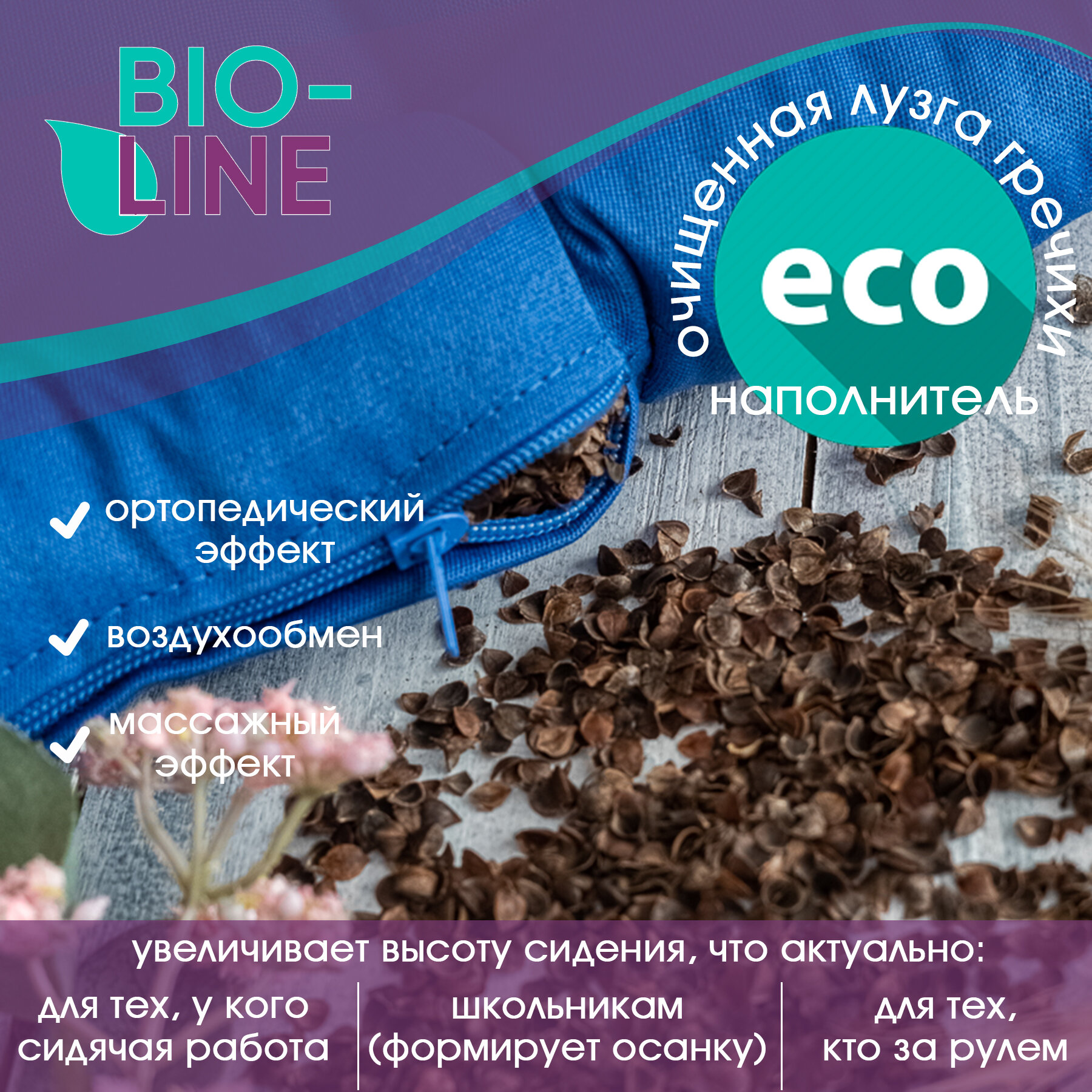 Ортопедическая подушка на стул с лузгой гречихи Bio-Line , универсальная, на сиденье офисного кресла, в автомобиль,40х40 см