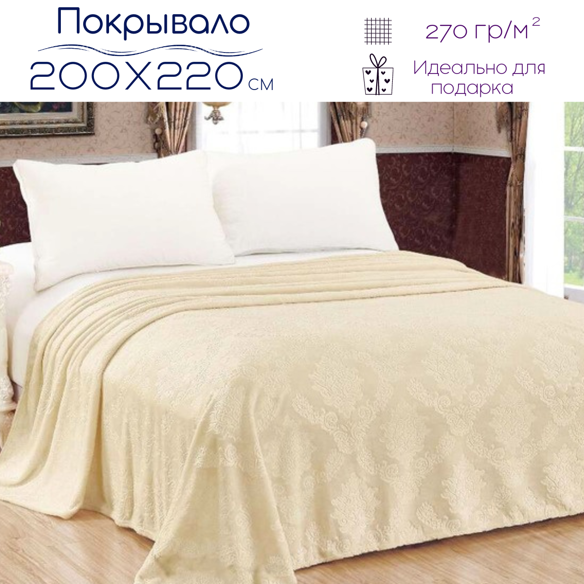 Плед 200х220 см / покрывало на кровать велсофт, бежевое рис. Парма , ENRIKA информация: