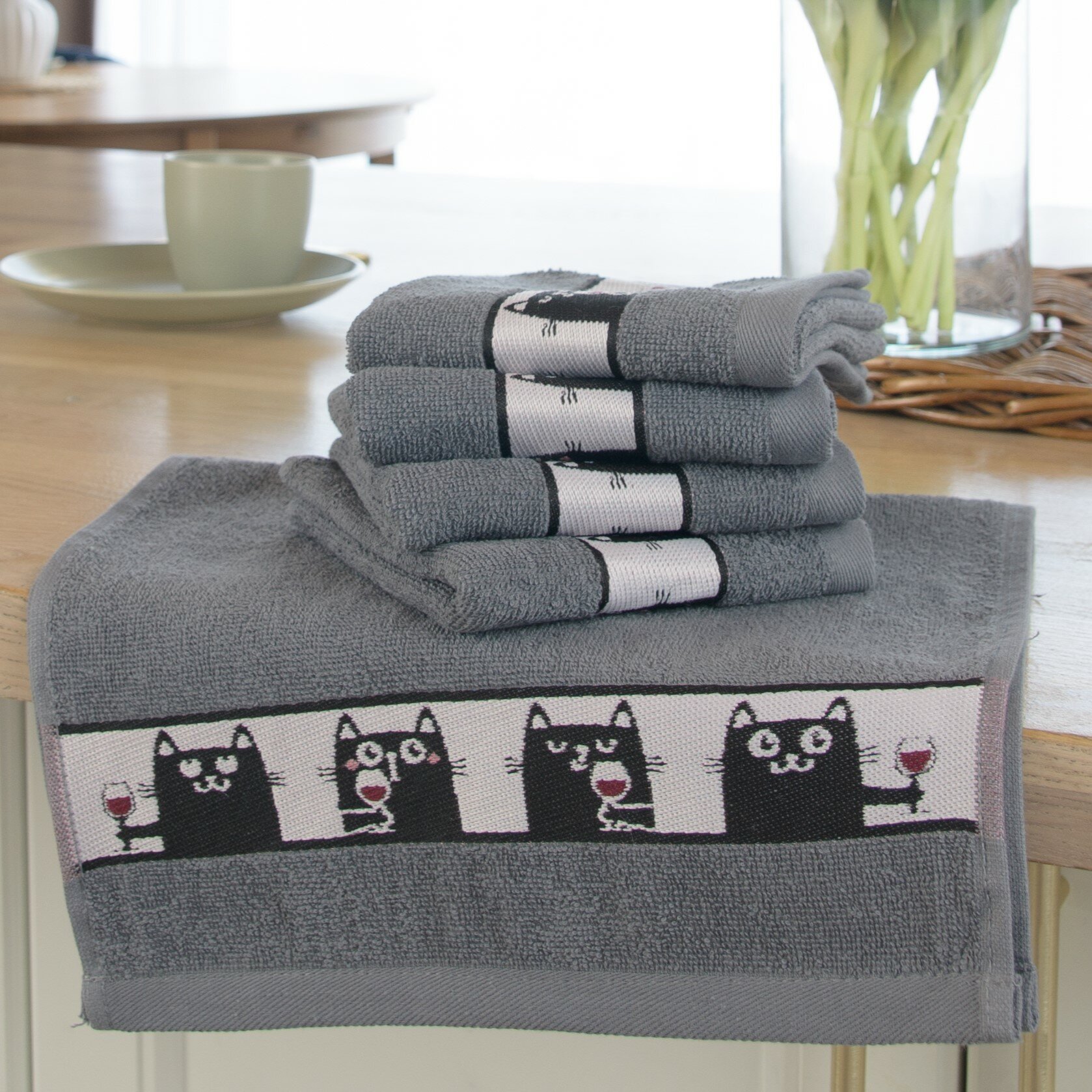 Отзывы на Полотенца махровые кухонные 30х60 см, набор 5 шт, с петелькой, Китчен, вино кот / темно-серый