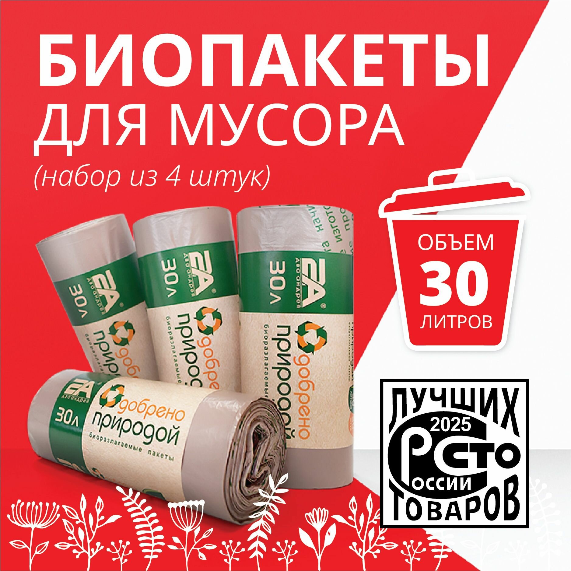 10 цен на Мусорные пакеты 30 л биоразлагаемые, 30 л, 4 рулона 120 шт