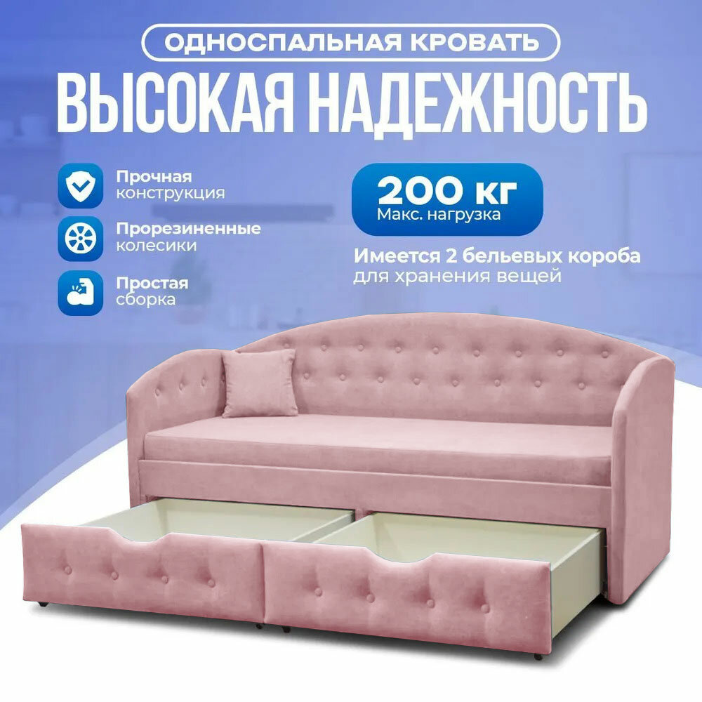 Детская мягкая кровать с ящиками и мягким бортиком, спальное место 80х180, без матраса информация: