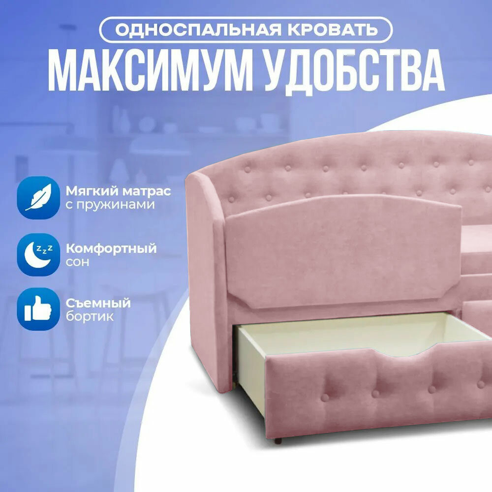 10 цен на Детская мягкая кровать с ящиками и мягким бортиком, спальное место 80х180, без матраса