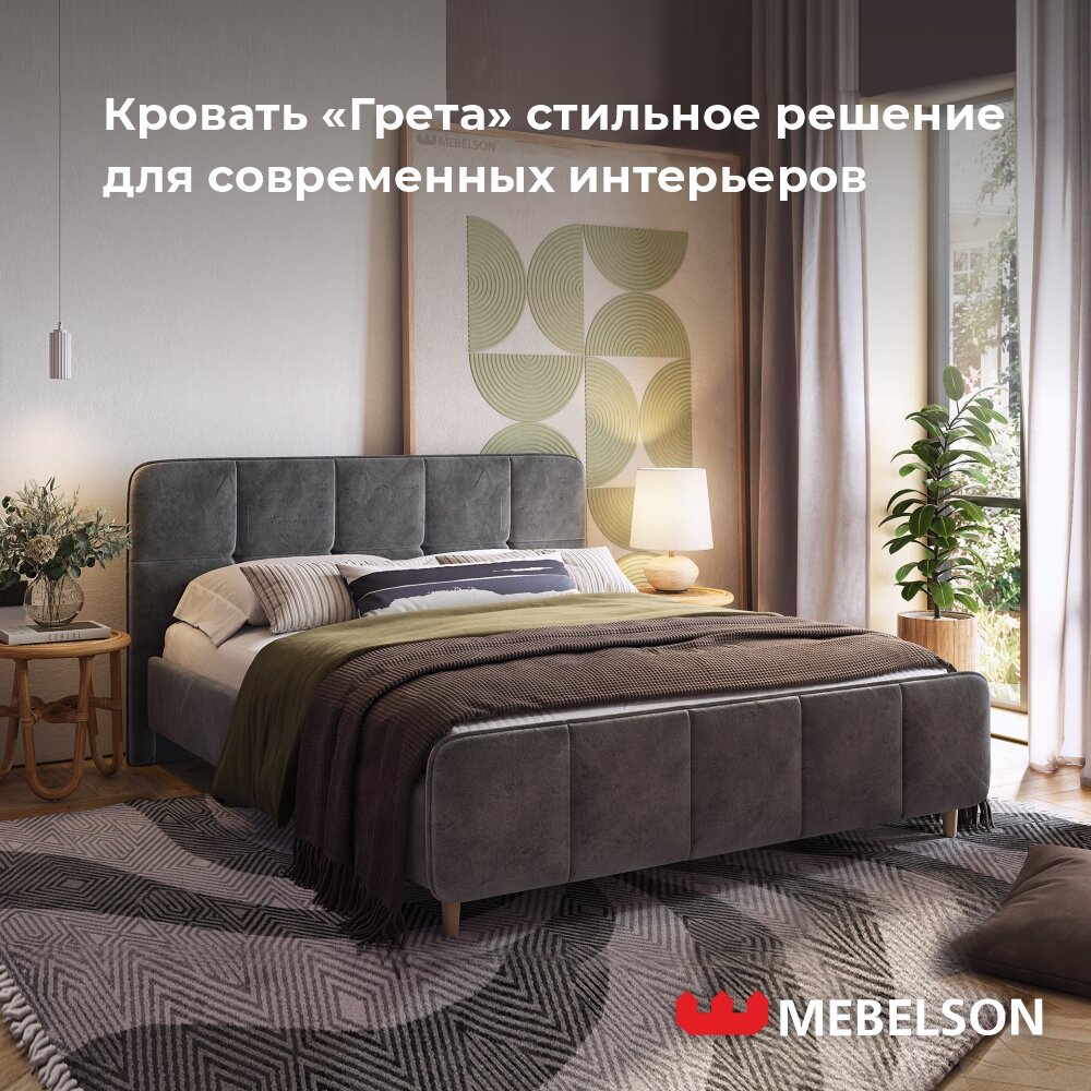 10 цен на Двуспальная кровать с основанием Грета 160х200 см, Велюр Грей Алькантара, Mebelson
