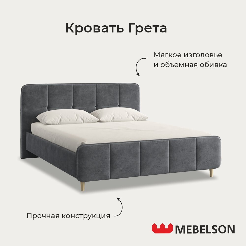 Отзывы на Двуспальная кровать с основанием Грета 160х200 см, Велюр Грей Алькантара, Mebelson