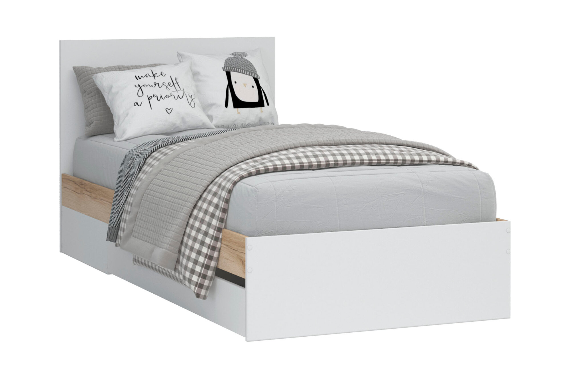 Кровать односпальная Нонтон Юкки с ящиками белая / дуб делано 94x203.2x86 см 9 390 ₽