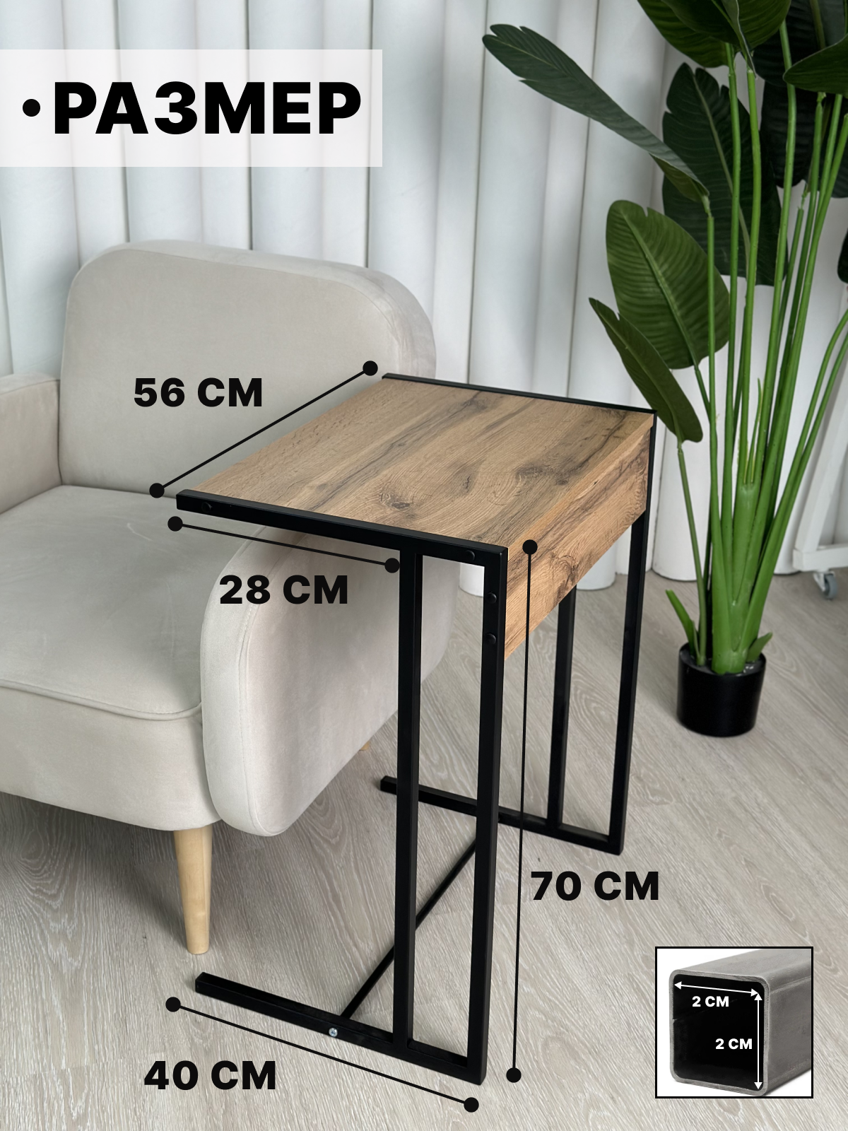 Журнальный столик приставной MEBEL-VSTILE, 40х56х70см информация: