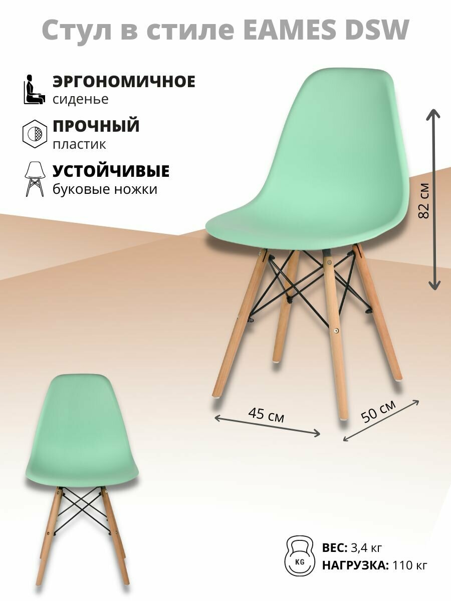 Стул для кухни со спинкой СтулБержи EAMES DSW, деревянные ножки, мятный, пластиковый информация: