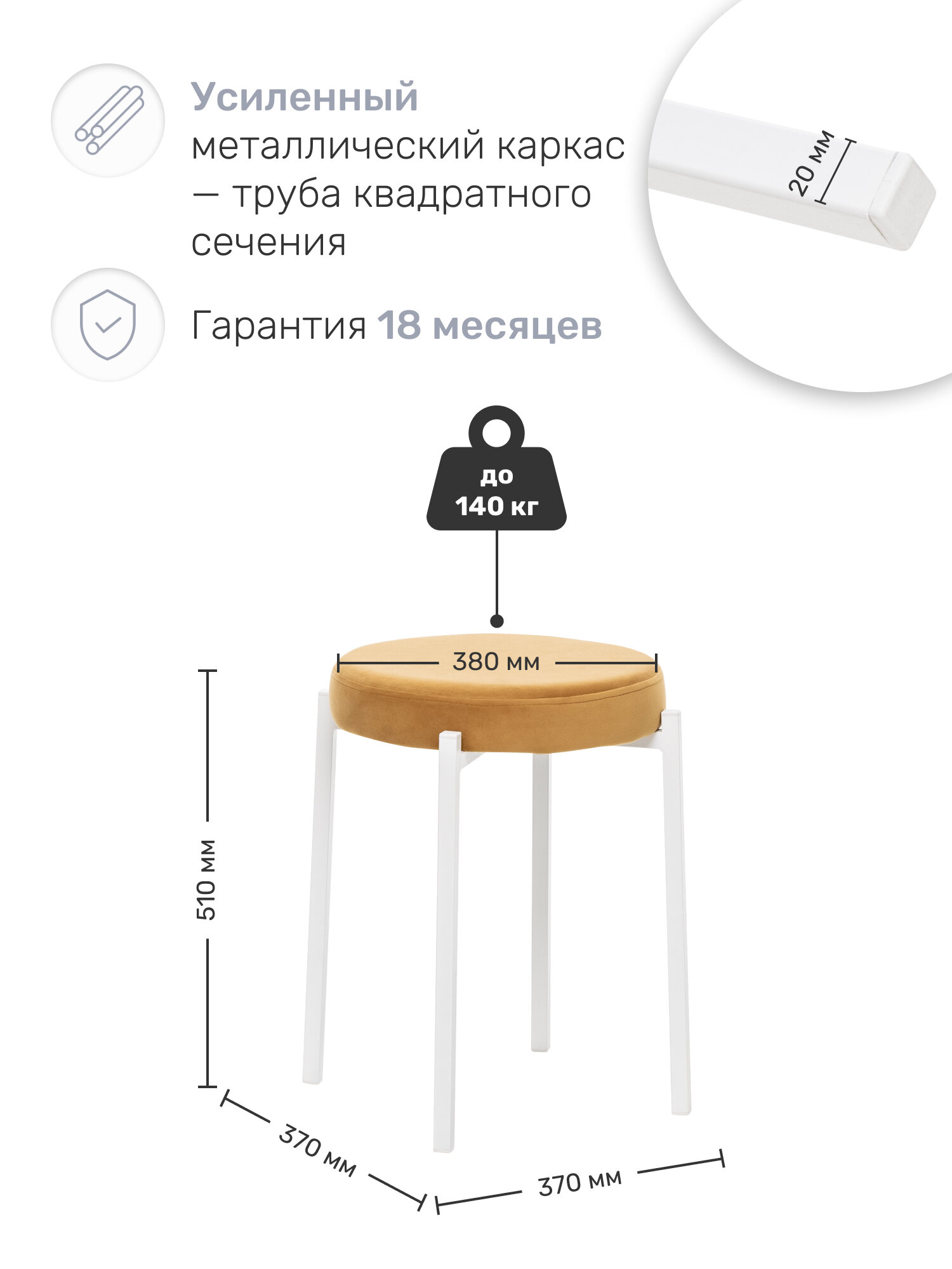Табурет Leset Авис, 2 шт, металл Белый, велюр ULTRA MUSTARD Горчичный информация: