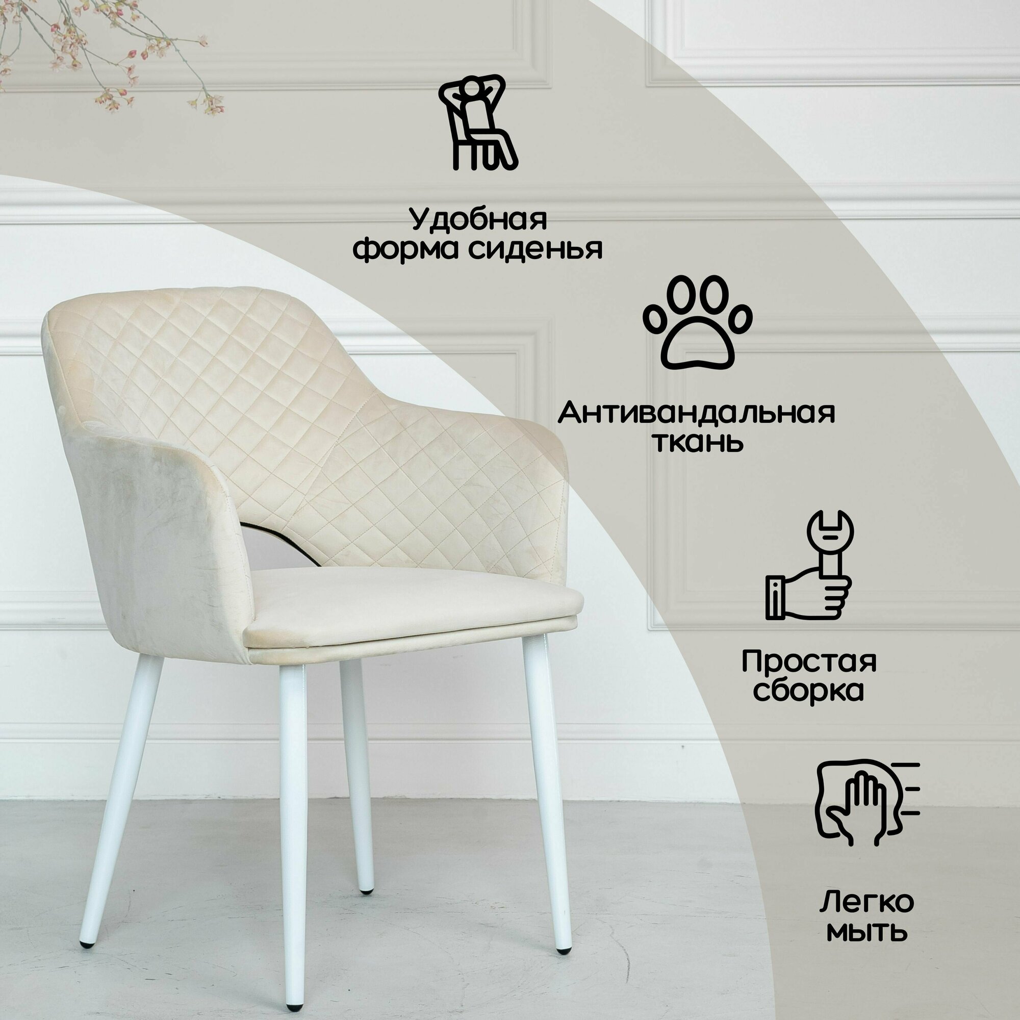10 цен на Стул Hotei со спинкой, Бежевый велюр белые глянцевые ножки