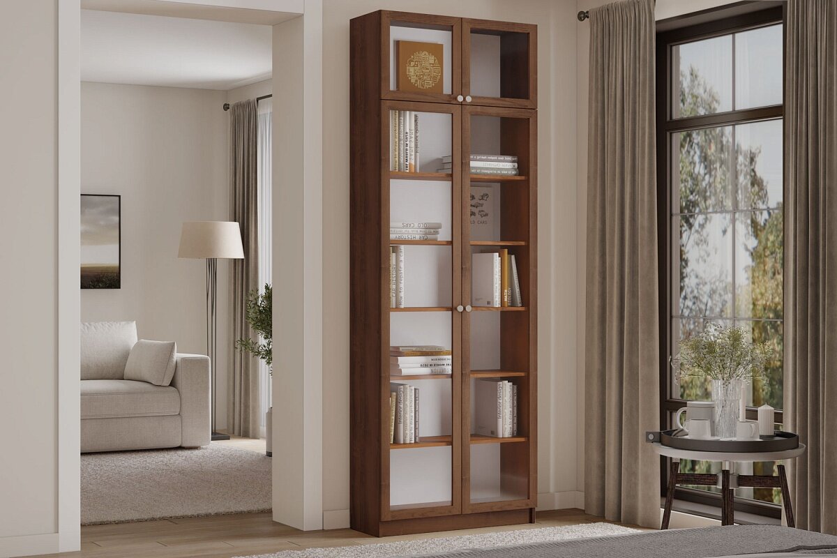 Библиотека МебельЛэнд24 Билли с антресолью - 20 Орех Экко 80x30x237 для книг четырехдверная информация: