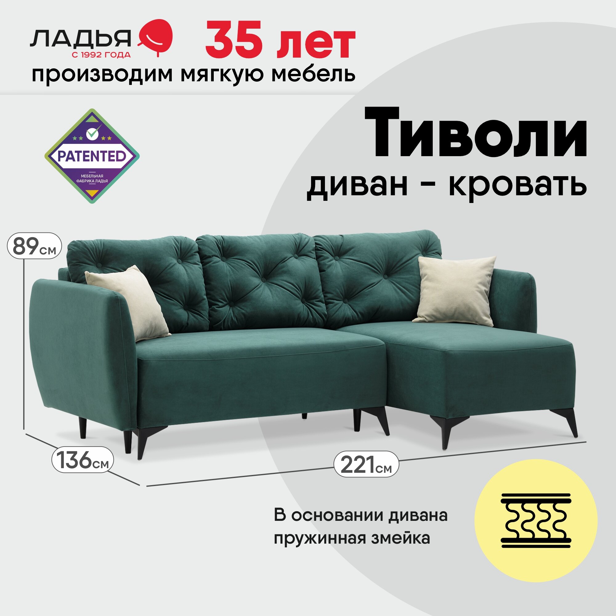 Отзывы на Угловой диван-кровать Тиволи 221х136х89 см, еврокнижка, Ладья, диван в гостиную, спальню, спальное место: 190х130см, Ultra Forest