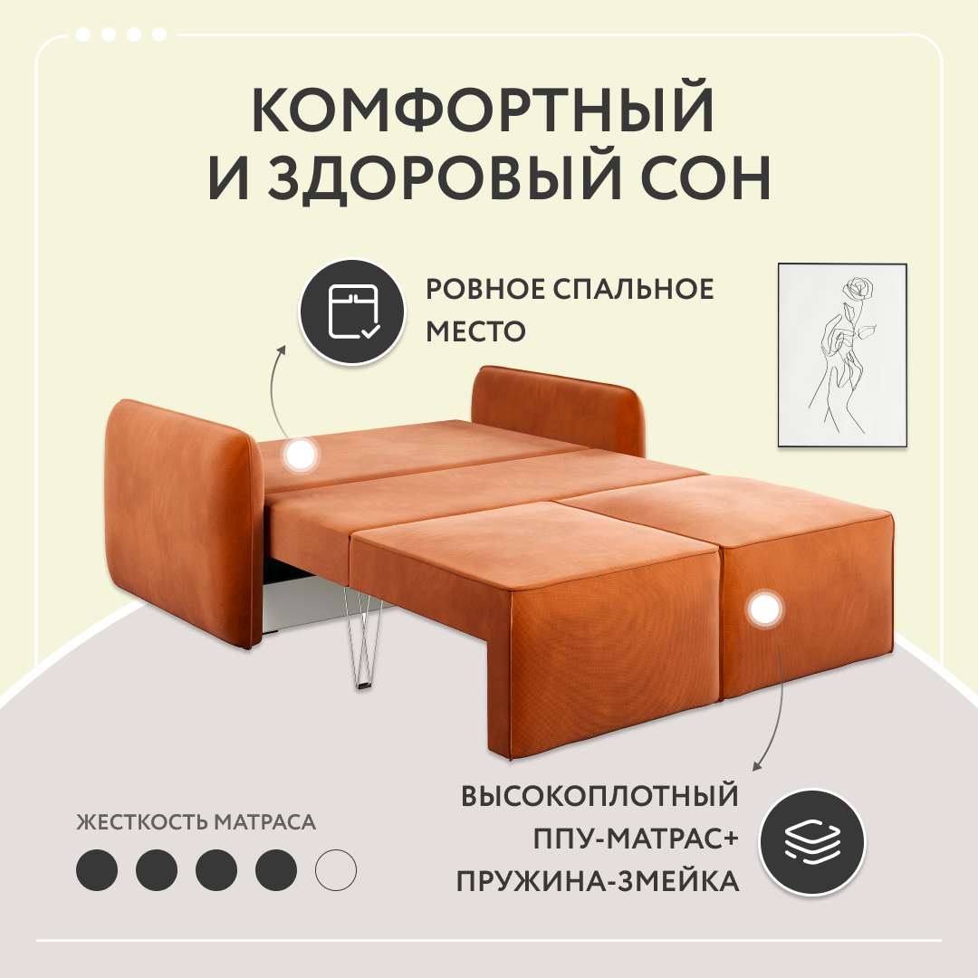 Диван-кровать раскладной прямой Dee One Портленд Мини , велюр, 163х90х80, терракотовый информация: