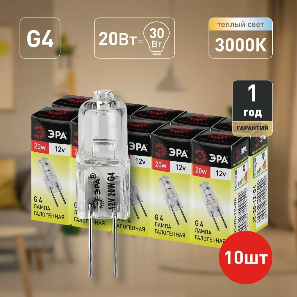 10 цен на (10 шт.) Галогенная лампочка ЭРА JC 20Вт 12В G4