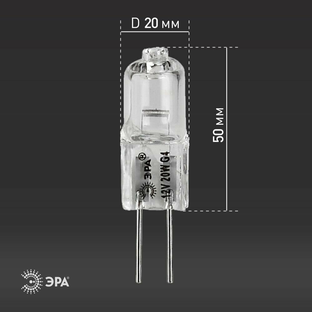 (10 шт.) Галогенная лампочка ЭРА JC 20Вт 12В G4 информация: