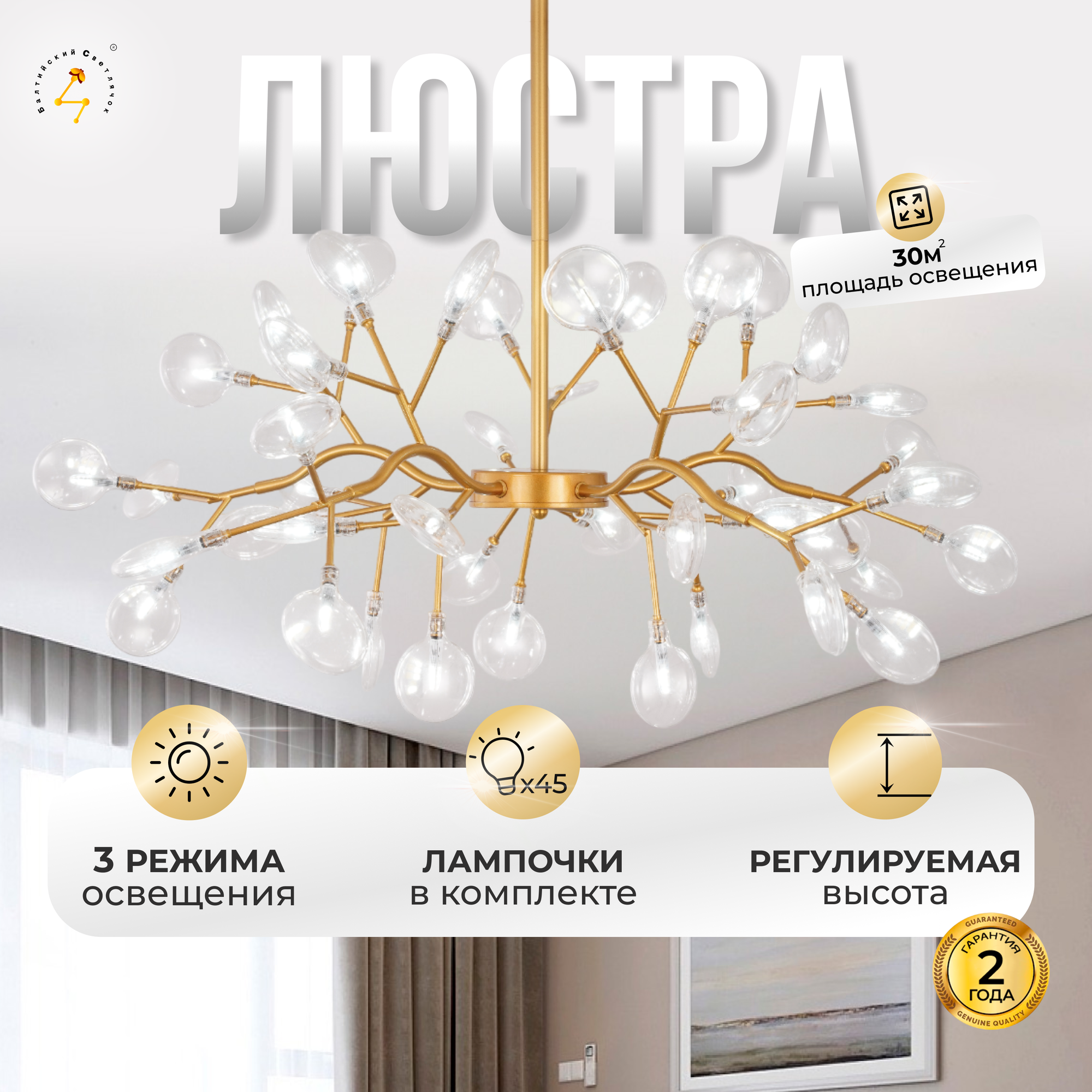 Отзывы на Люстра подвесная Балтийский Светлячок золотая с прозрачными плафонами 45 ламп