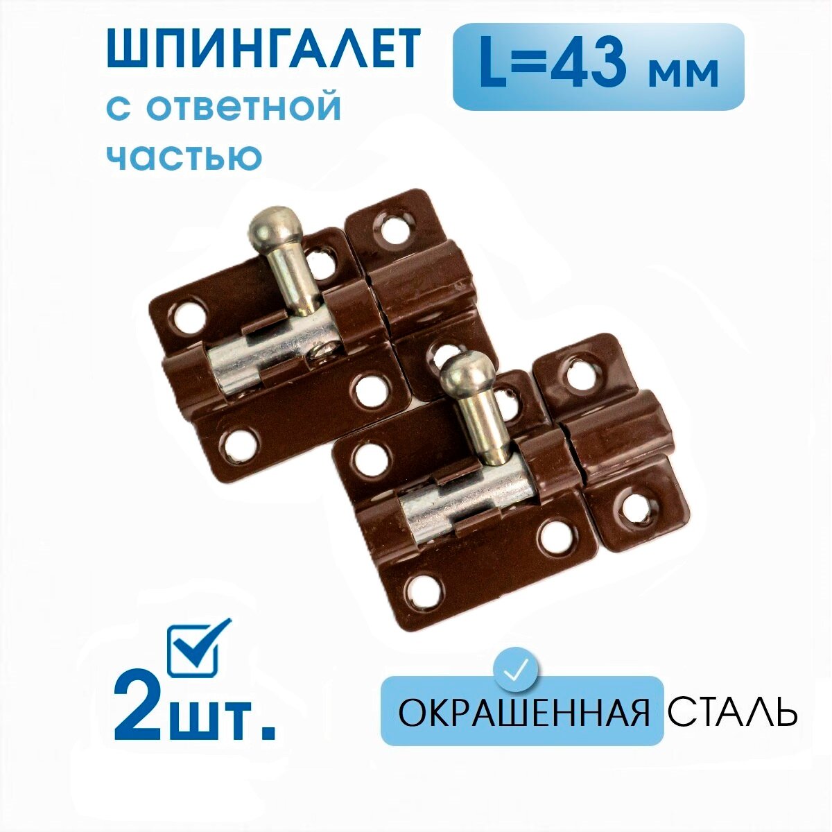 Шпингалет маленький L-43 с ответной частью (2 шт), оцинк. сталь, задвижка малая на дверь накладная ЗТ, щеколда для двери маленькая 278 ₽