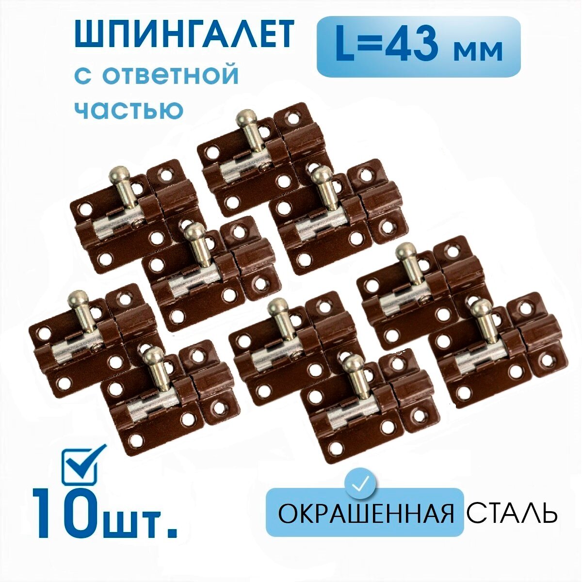 Шпингалет для двери 10 шт, задвижка накладная коричневая, щеколда маленькая информация: