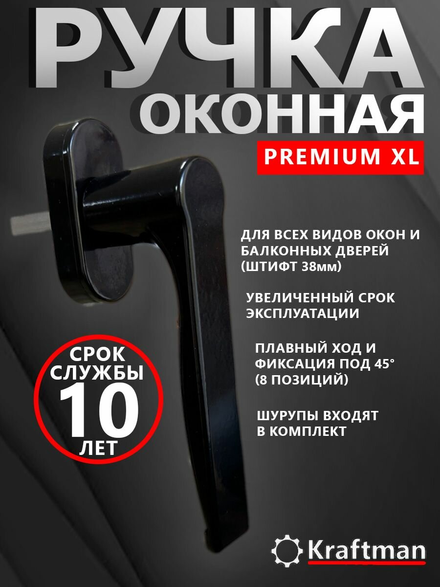 Ручка для пластиковых окон, ручка оконная 8-позиционная алюминиевая черная премиум XL, штифт 38мм информация: