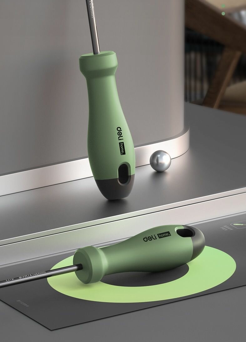 Крестовая отвертка "Home Series Green" Deli HT1205L PH1x100мм Эксклюзивный дизайн, софттач пластик