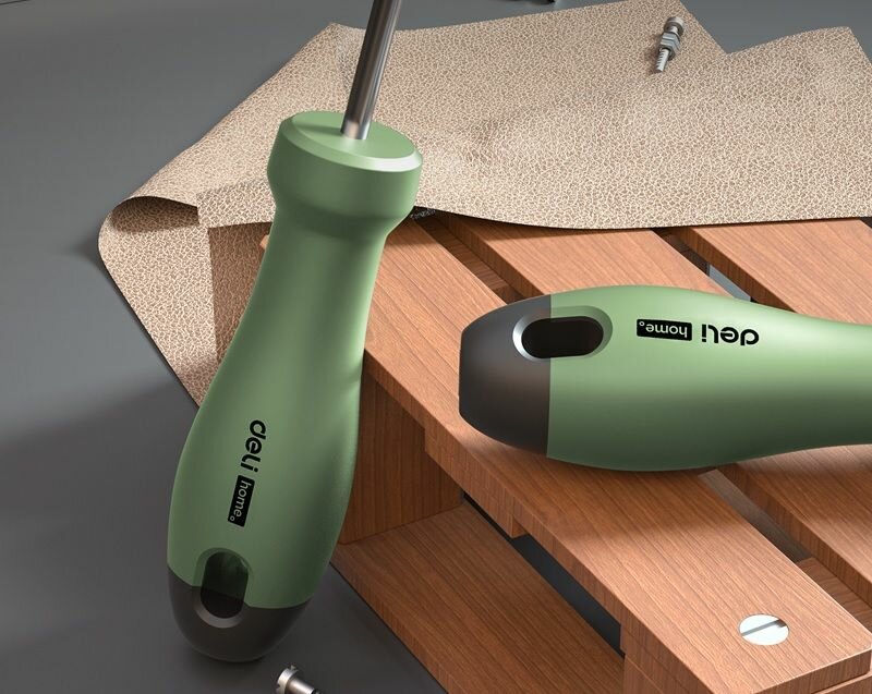 Отзывы на Крестовая отвертка "Home Series Green" Deli HT1205L (Эксклюзивный дизайн, рукоять из софттач пластика, CrV сталь, подарочная упаковка)