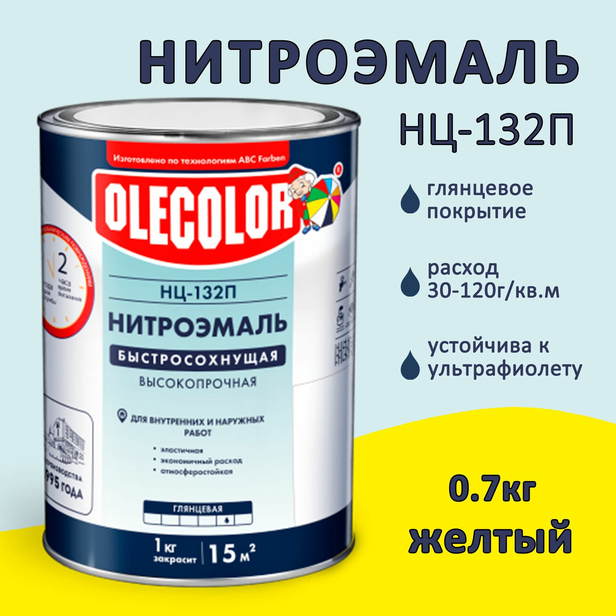 Эмаль быстросохнущая НЦ-132 Желтая 0,7 кг OLECOLOR информация: