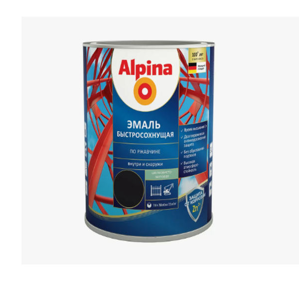 Alpina эмаль быстросохнущая по ржавчине (графитово-серый, RAL 7024, полуматовый, 0,75л)
