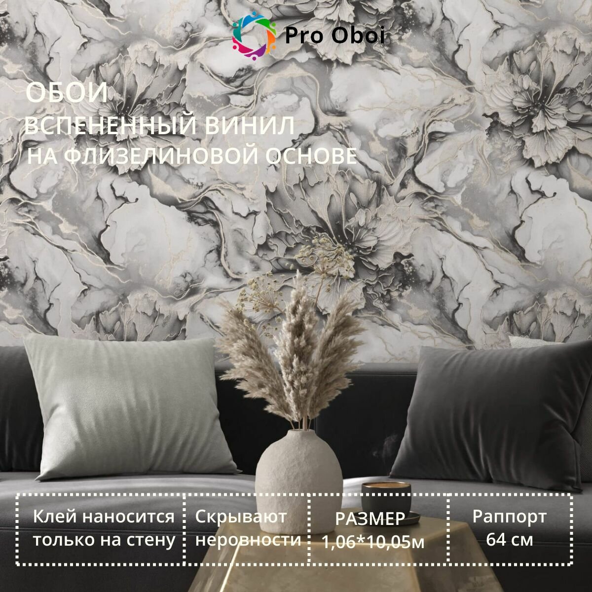 10 цен на Обои Вспененный винил на флизелине черно-серые цветы 1,06*10м