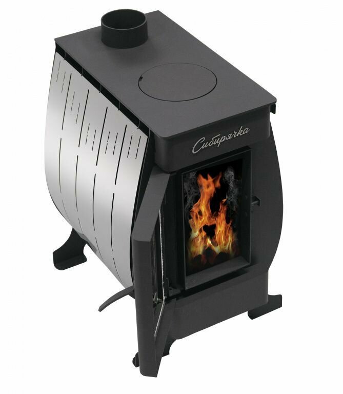 Сибирячка 9 отопительная печь НМК с кожухом из нержавеющей стали и конфоркой, дверцей со стеклом и функцией обогрева воздуха для дома, дачи, коттеджа и гаража 35 900 ₽