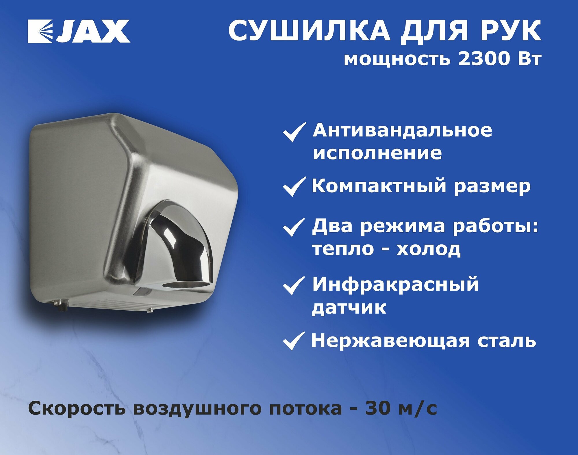 Сушилка для рук JAX JHD 2.2M электрическая тихая, 2200 Вт информация: