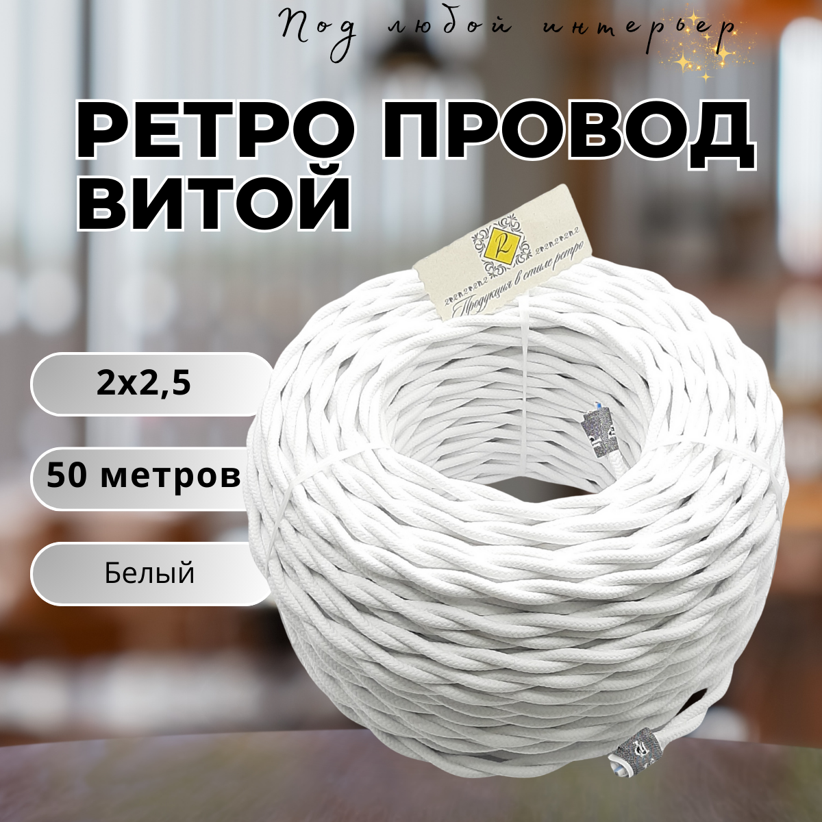 кабель ретро-проводка Bironi провод 2/2,5 белый B1-425-71-50 ЛОТ 50 м информация: