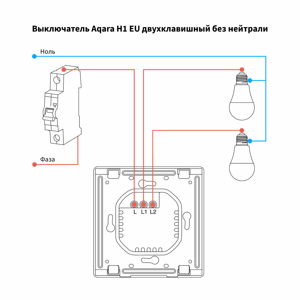 Умный выключатель двухклавишный без нейтрали Aqara H1 WS-EUK02bl, умный дом, черный информация: