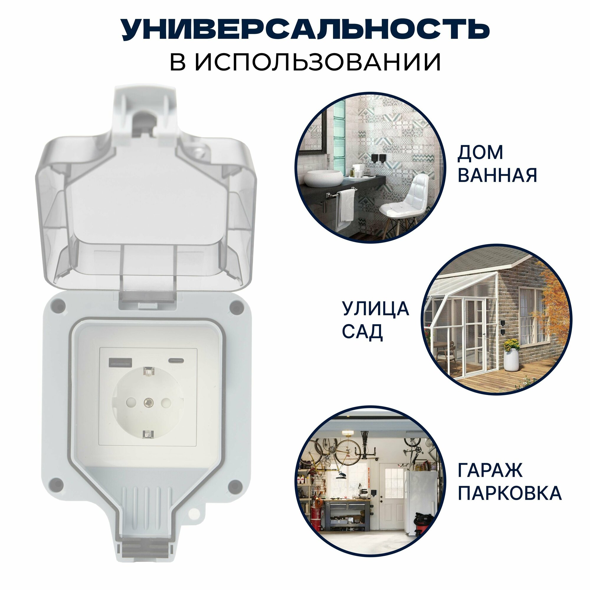 Отзывы на Розетка уличная с USB+C IP66 влагозащищенная, садовая, наружная с крышкой, электророзетка накладная с заземлением 16А