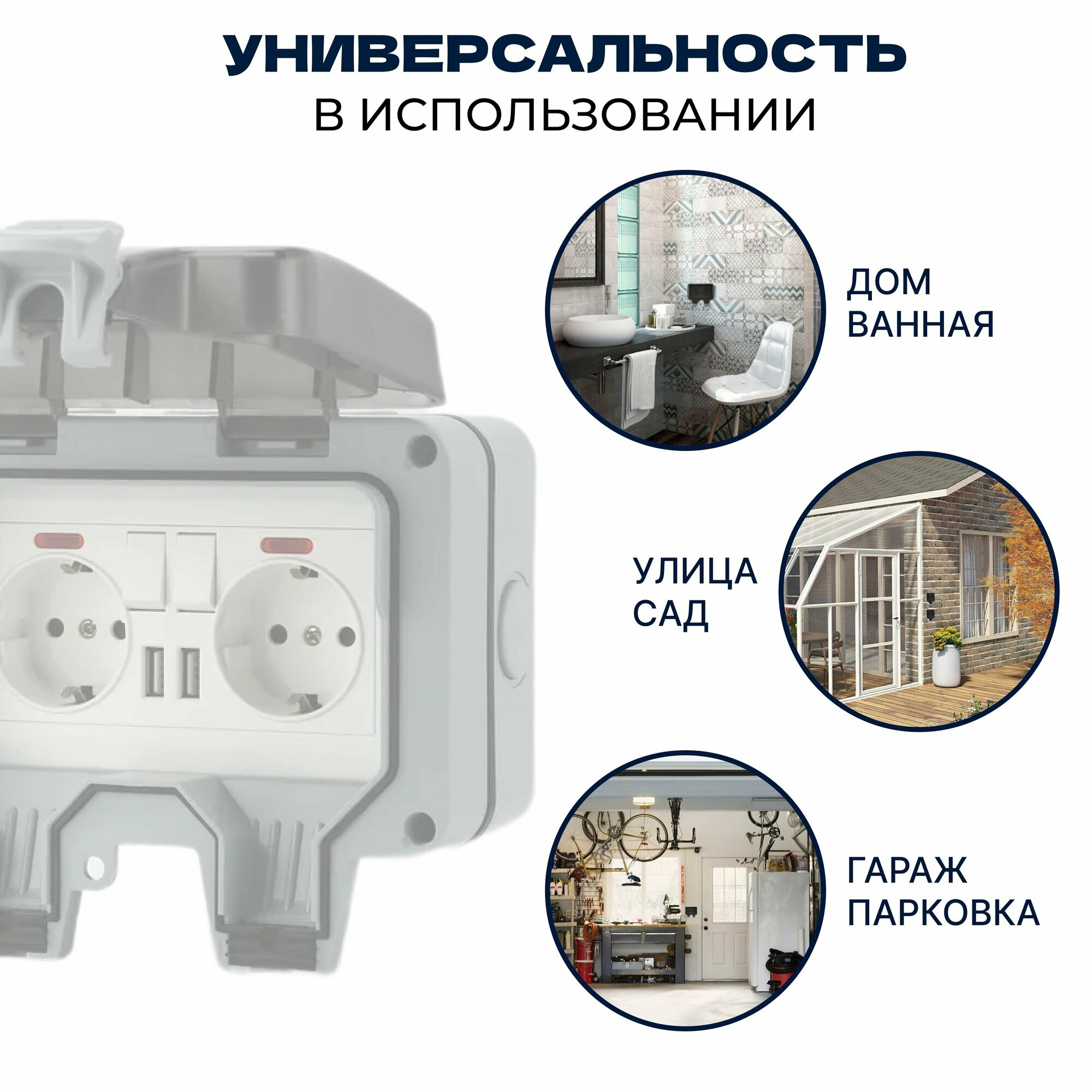 Отзывы на Розетка уличная USB IP66 двойная влагозащищенная, садовая, наружная с крышкой, электророзетка накладная с заземлением