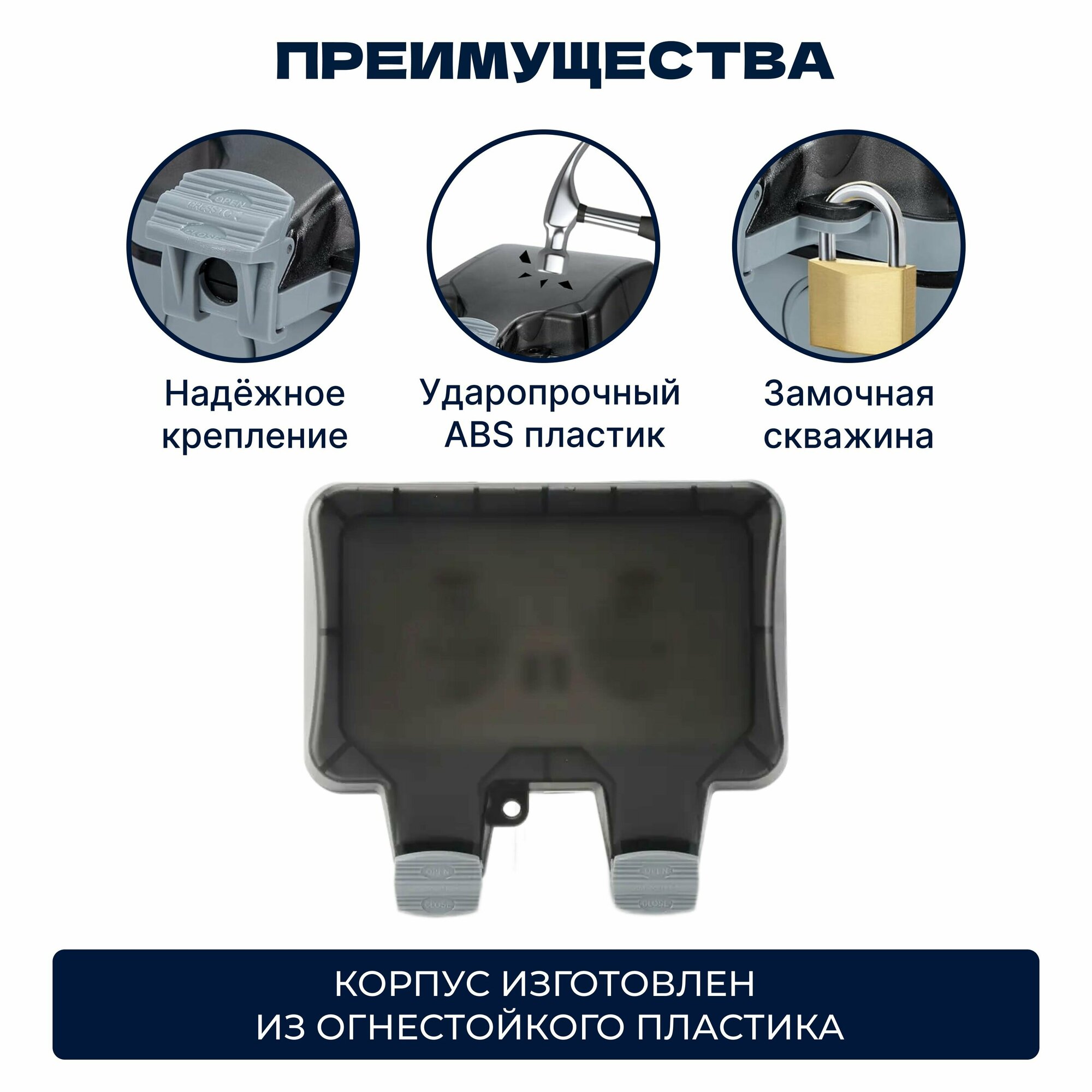 Розетка уличная с USB-C IP66 двойная влагозащищенная, садовая, наружная с крышкой, электророзетка накладная с заземлением 16А 2 349 ₽