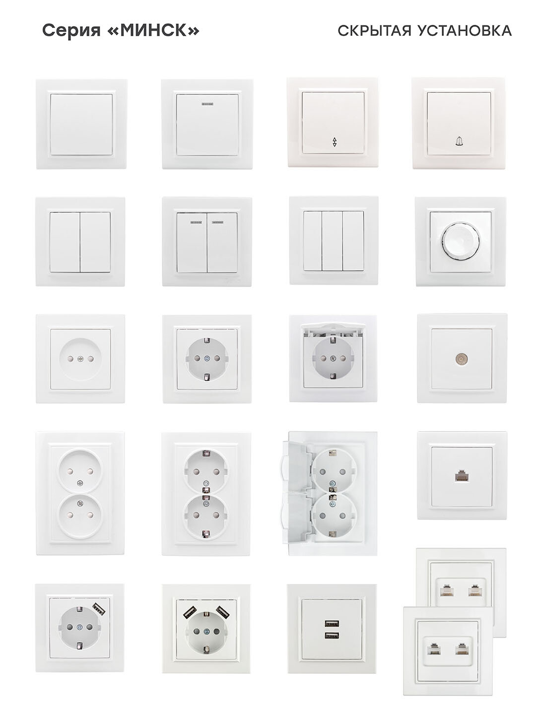 - Розетки, выключатели и рамки