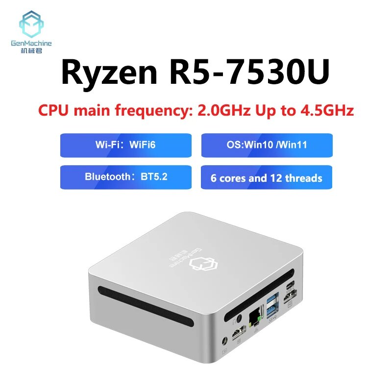 10 цен на Мини-ПК Genmachine Genmachine, AMD Ryzen7, R7 7530U, Windows 11, 6 ядер, 12 потоков DDR4 3200 МГц 256/512 ГБ M.2 SSD WIFI6 BT5.2, None, EU