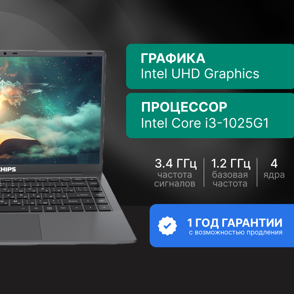 Ноутбук Echips Hot 15.6" 1920x1080 IPS, Intel Core i3-1025G1, 8GB RAM, SSD 256GB, Windows 11 Pro 37 999 ₽