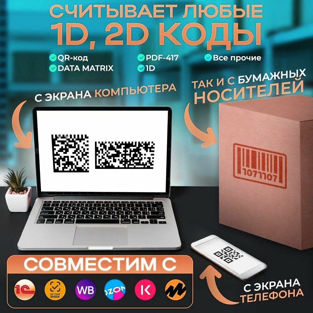 Беспроводной 2D сканер штрихкода для маркировки, ЕГАИС, Честный знак, Атол, Меркурий, идеален для ПВЗ
