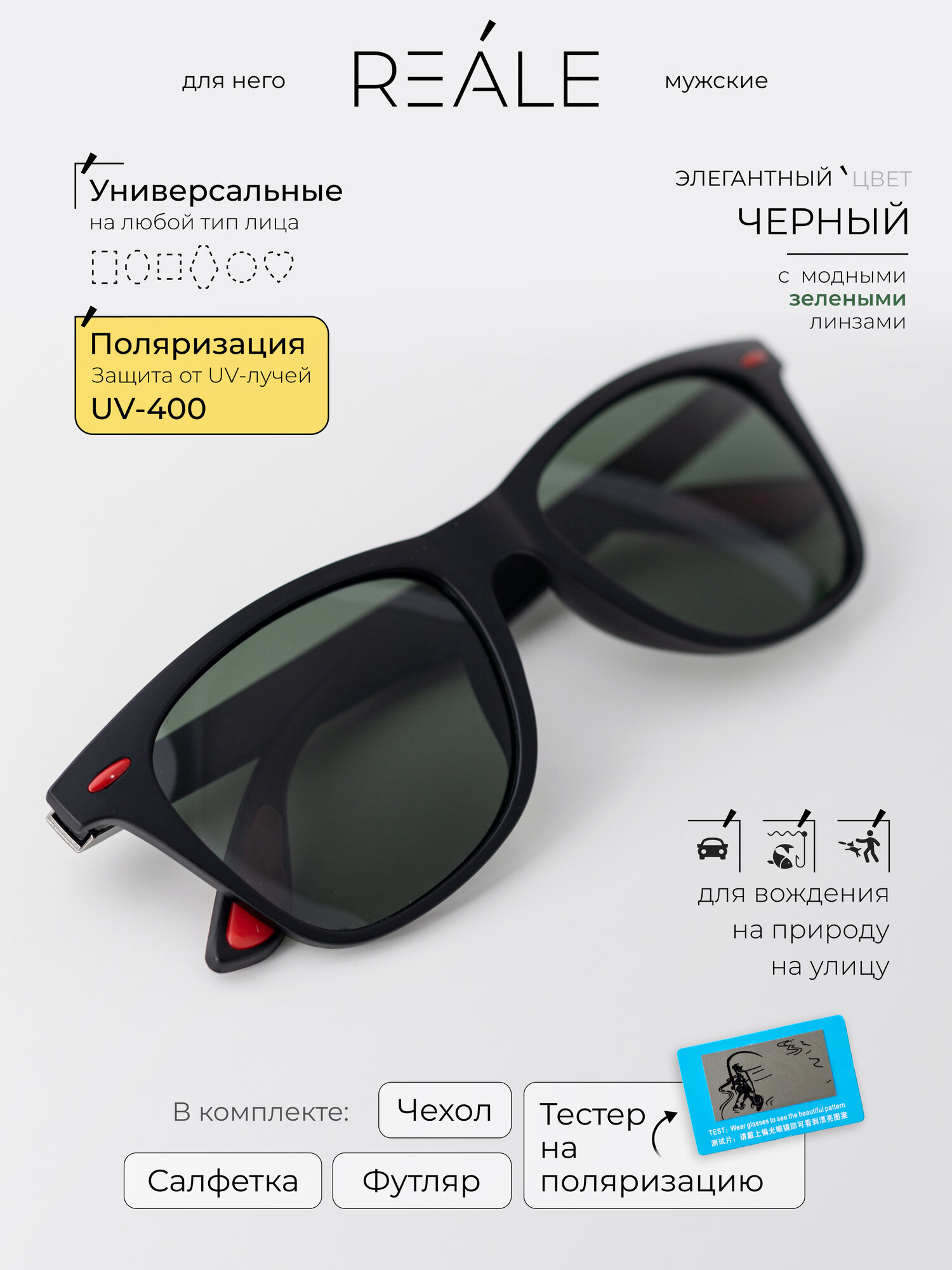 Отзывы на Очки солнцезащитные Wayfarer, поляризация и защита от ультрафиолета UV400, коллекция 2024, REALE, черные, зеленые