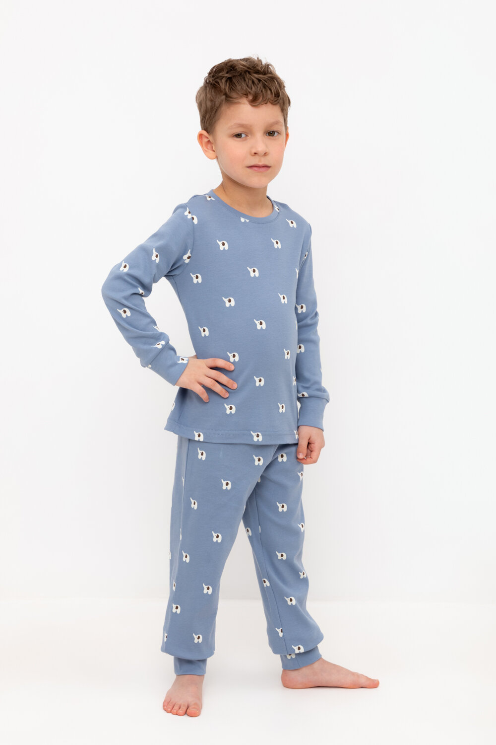 10 цен на Пижама Crockid К 1552/серо-голубой,мини слоники р 52/80 для мальчика из натурального хлопка