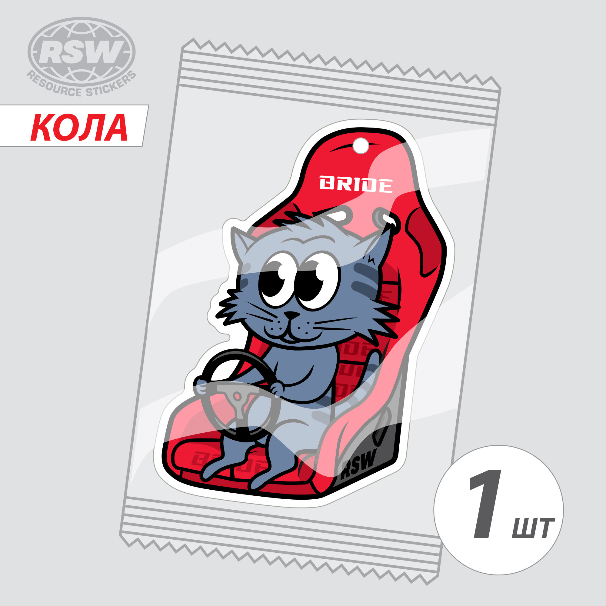 10 цен на Ароматизатор для авто кот в гоночном сидении "Кола" / Resource Stickers