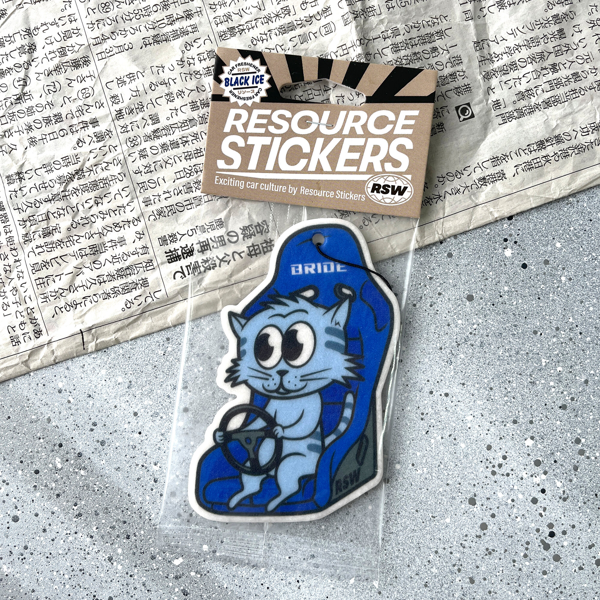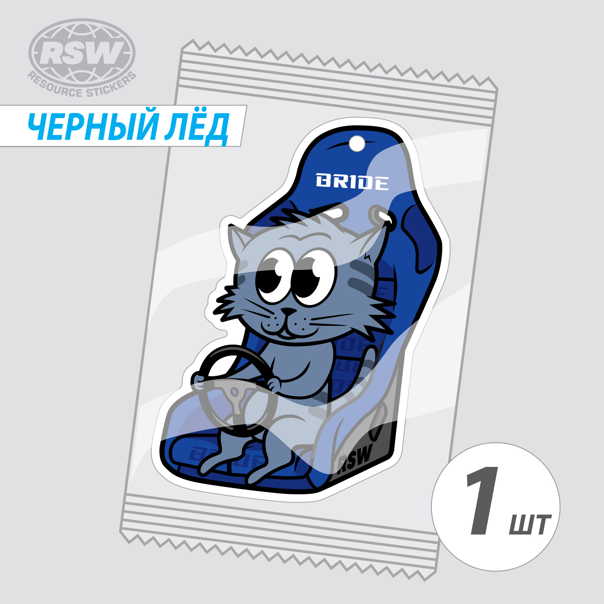 10 цен на Ароматизатор для авто кот в гоночном сидении "Чёрный лёд" / Resource Stickers