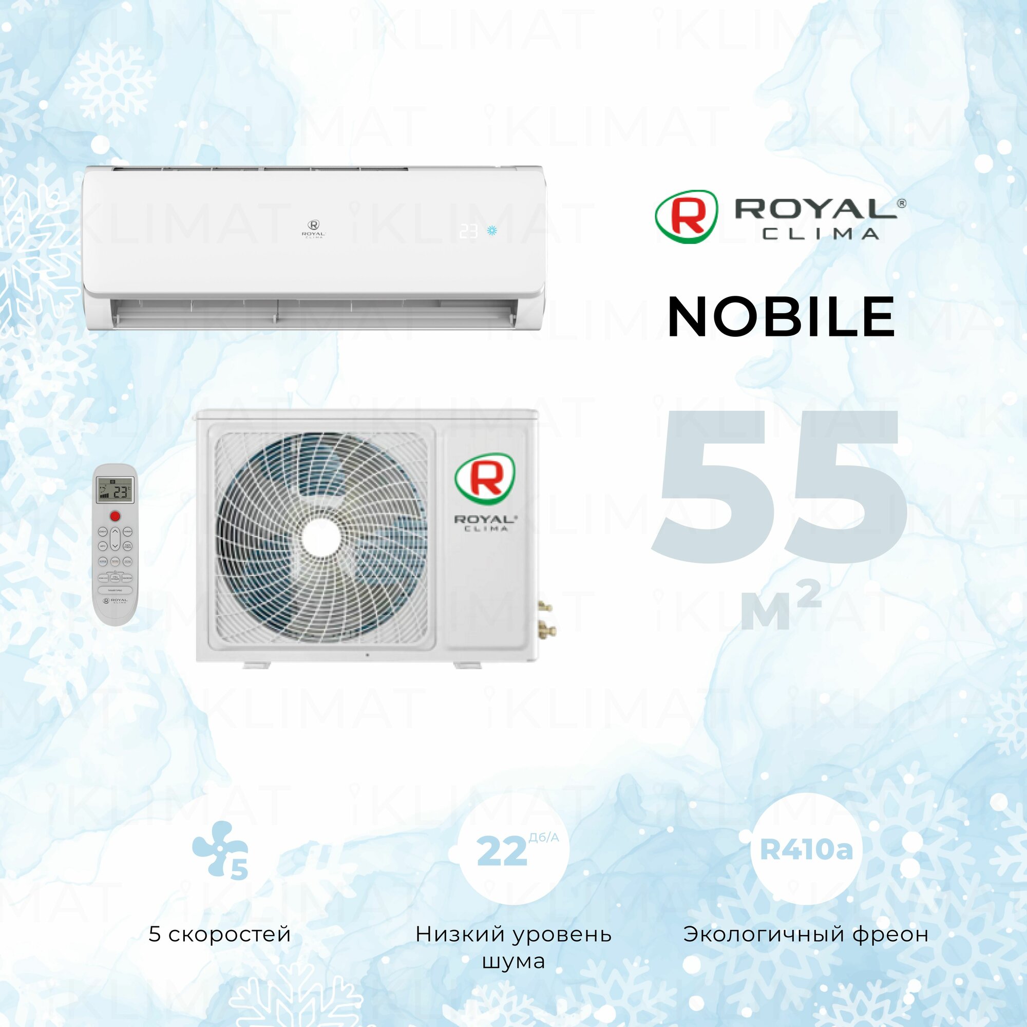 Сплит система, настенный кондиционер Royal Clima NOBILE RC-NB55HN, комплект, белый информация: