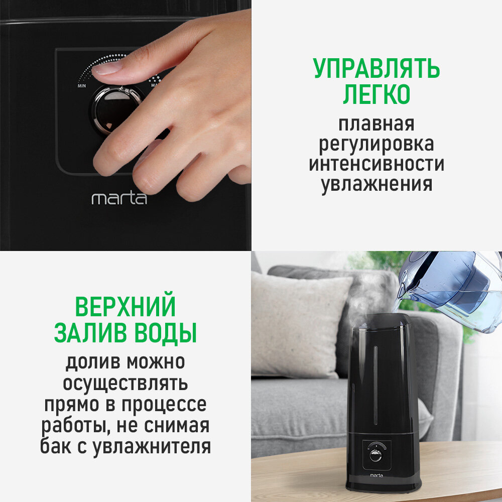 Увлажнитель воздуха ультразвуковой MARTA MT-HF4706A антивирусная УФ - лампа черный