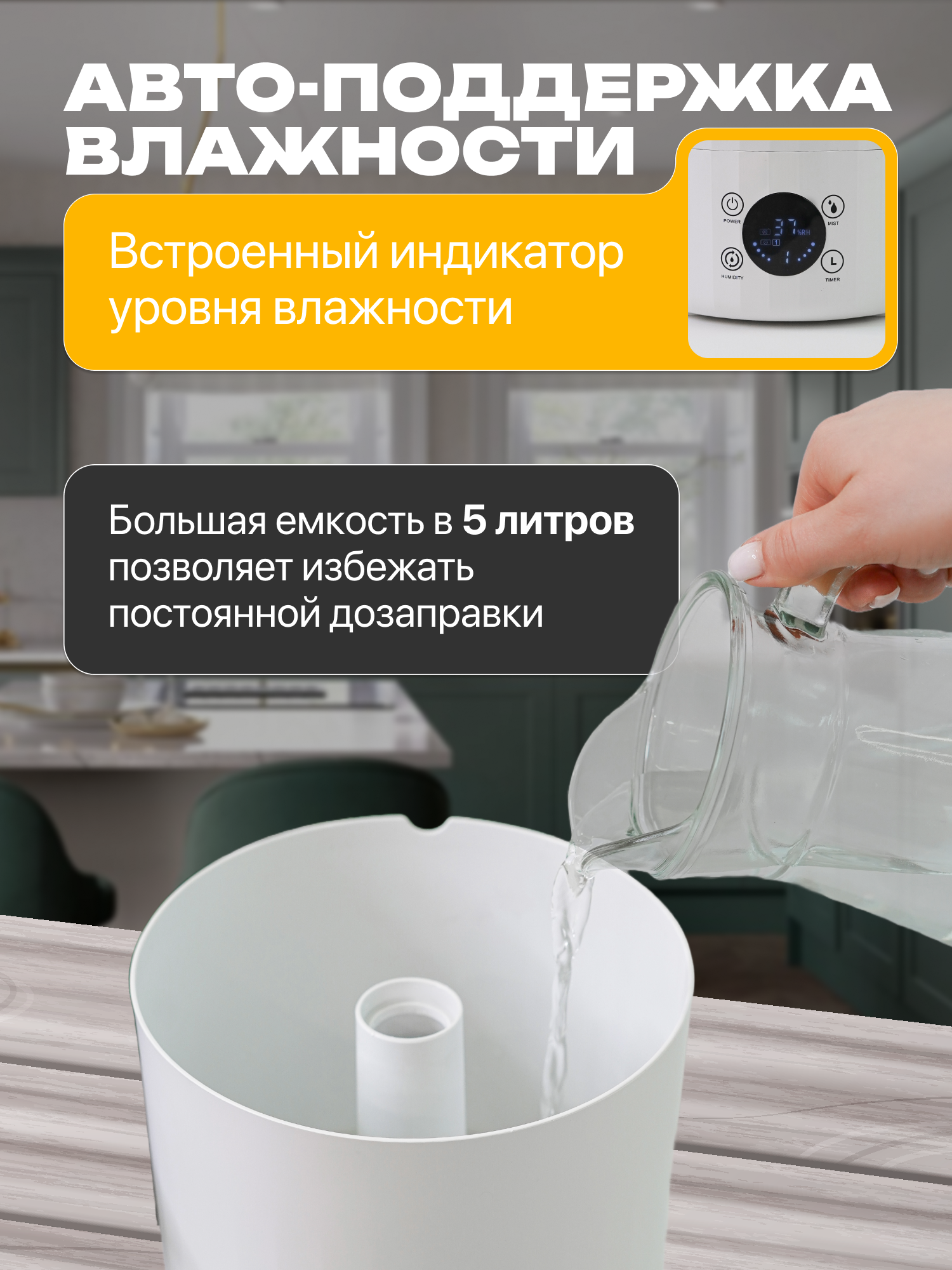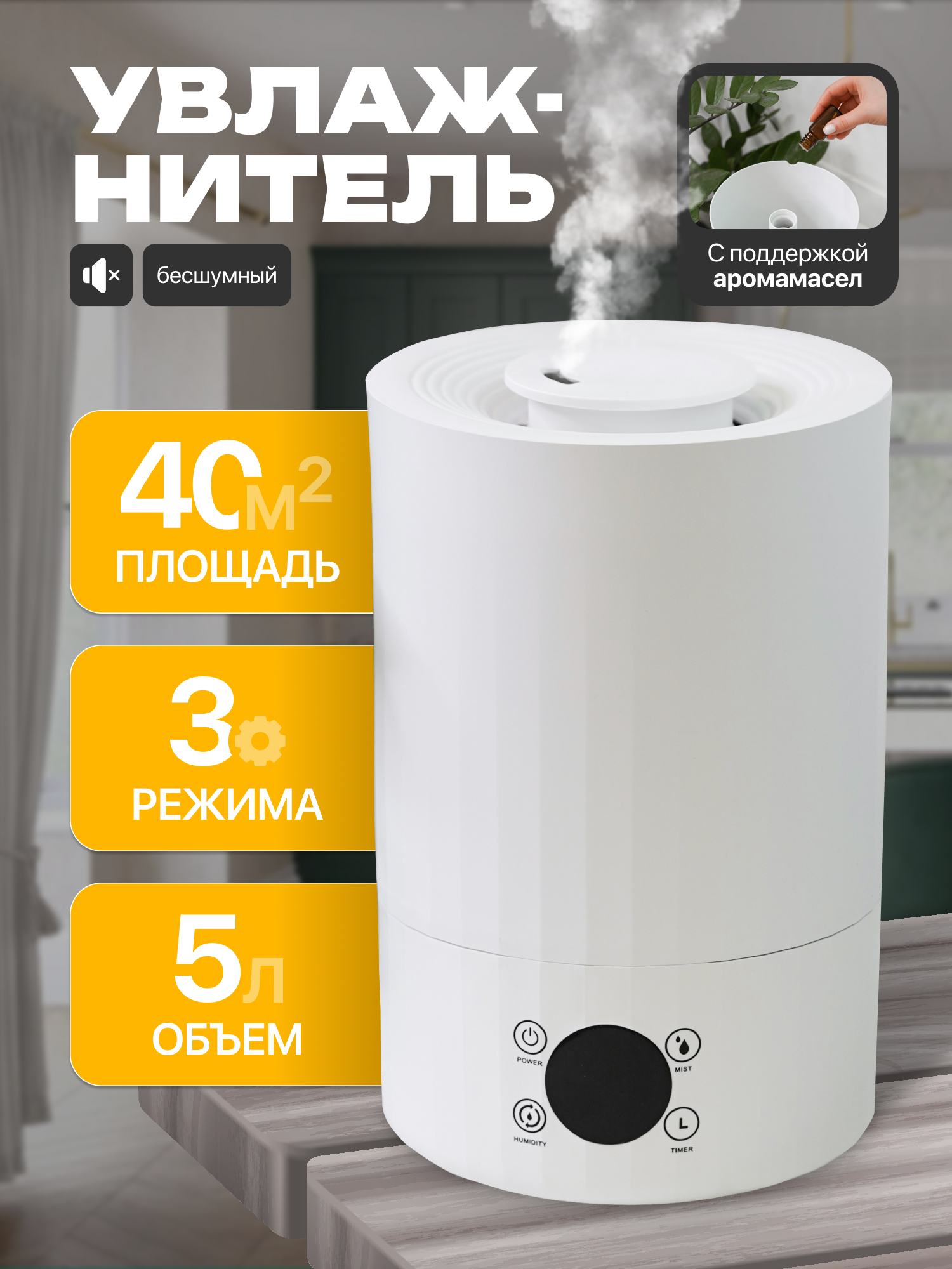 10 цен на Увлажнитель воздуха и аромадиффузор, 5 литров, ультразвуковой, белый, 40 кв м, пульт ДУ