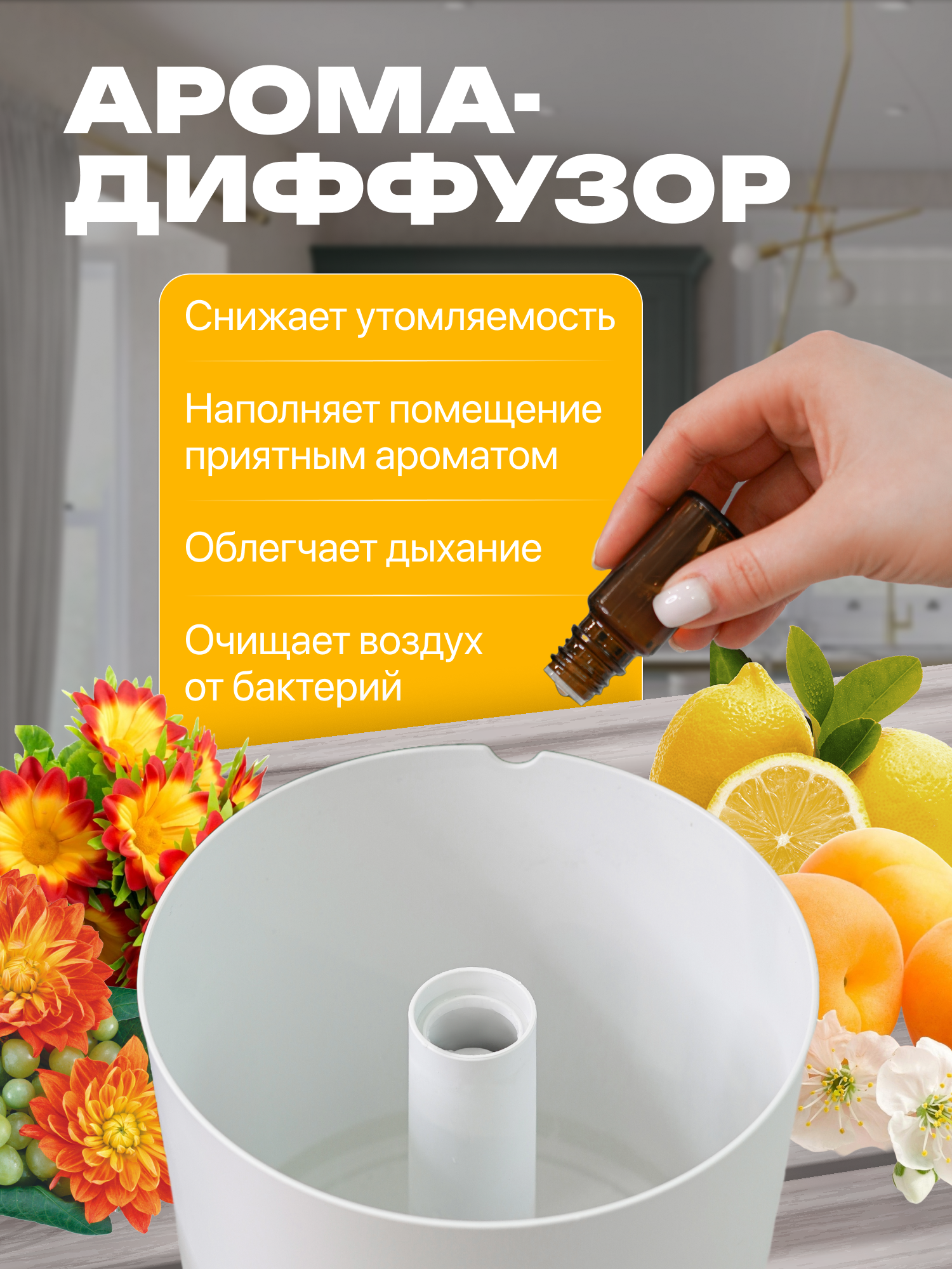 Увлажнитель воздуха в современном дизайне 1500 мл / Аромадиффузор для дома и офиса белый