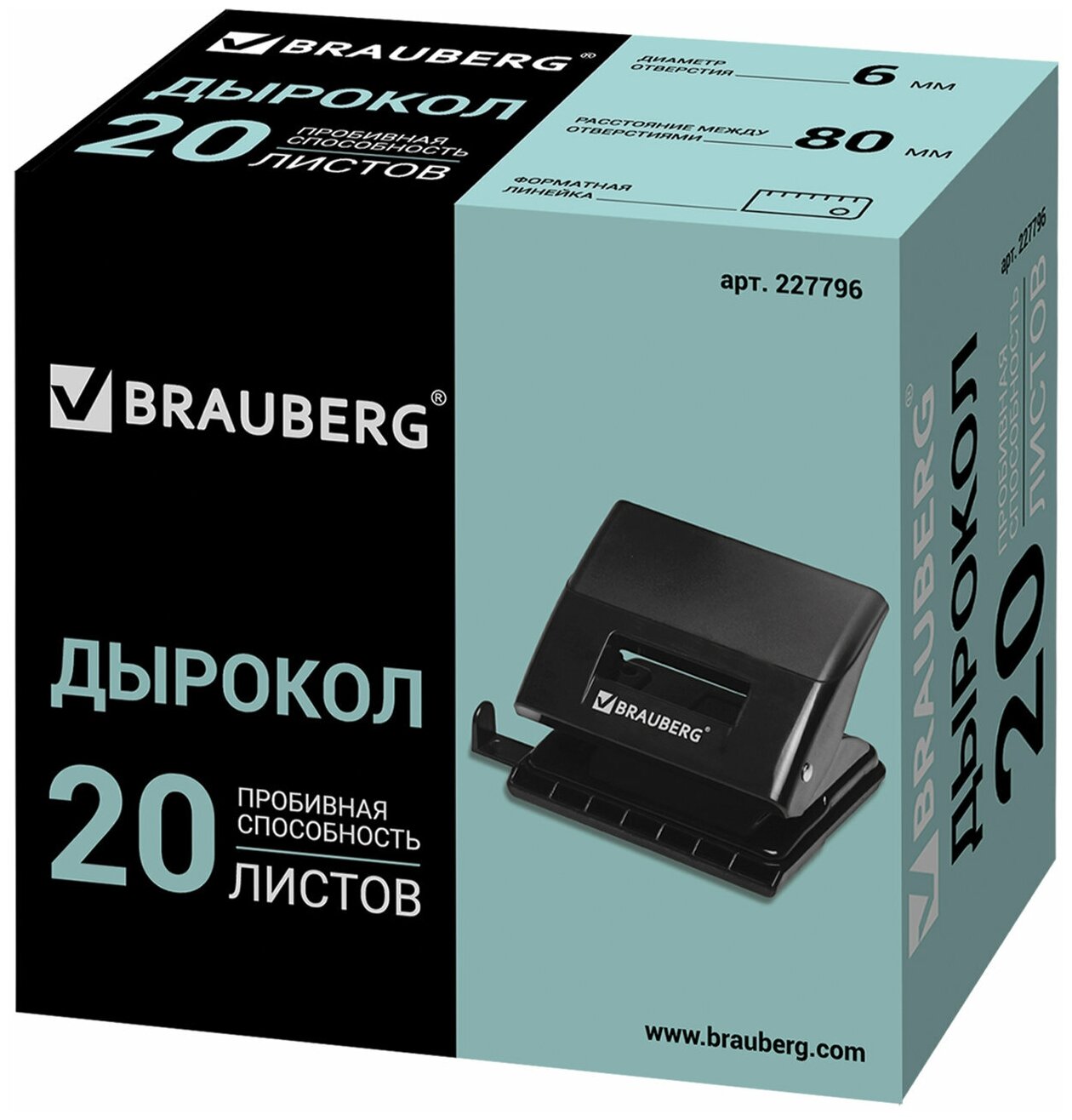 Дырокол BRAUBERG "Black Jack", до 20 листов, черный, 227796 информация: