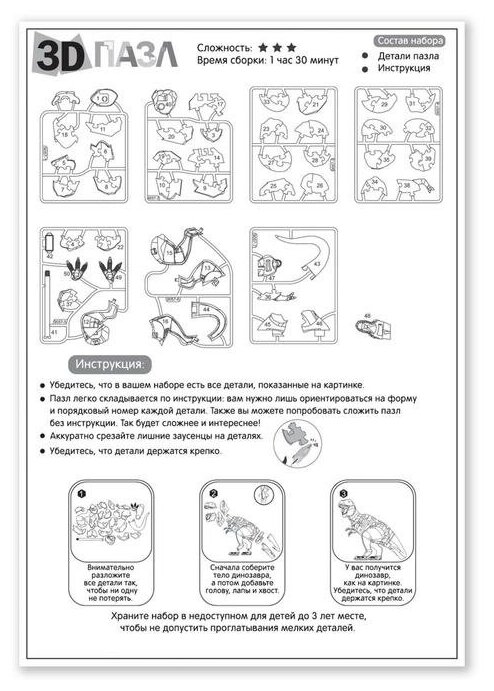 Отзывы на Пазл 3D кристаллический «Динозавр», 50 деталей, цвет микс, для детей и малышей