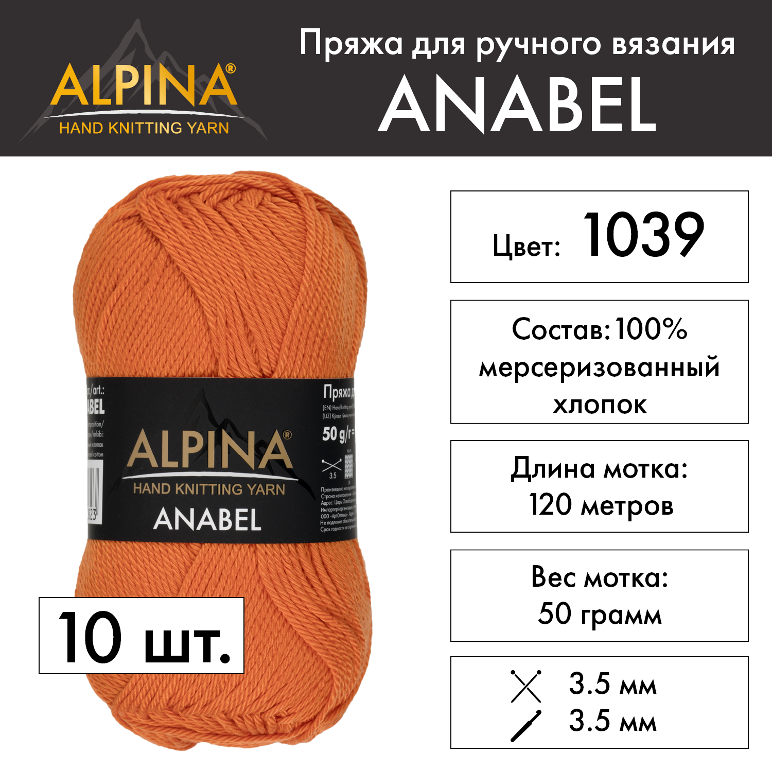 10 цен на Пряжа Alpina "ANABEL" 10 шт. по 50 г 100% мерсеризованный хлопок 120 м №1039 оранжевый