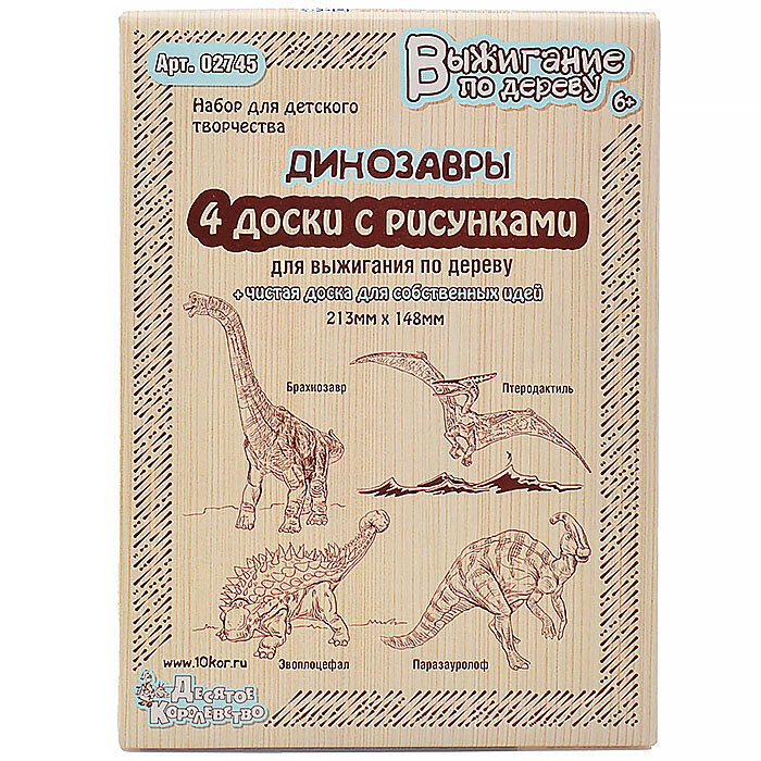 Набор для выжигания Брахиозавр, Птеродактиль, Эвоплоцефал, Паразауролоф информация: